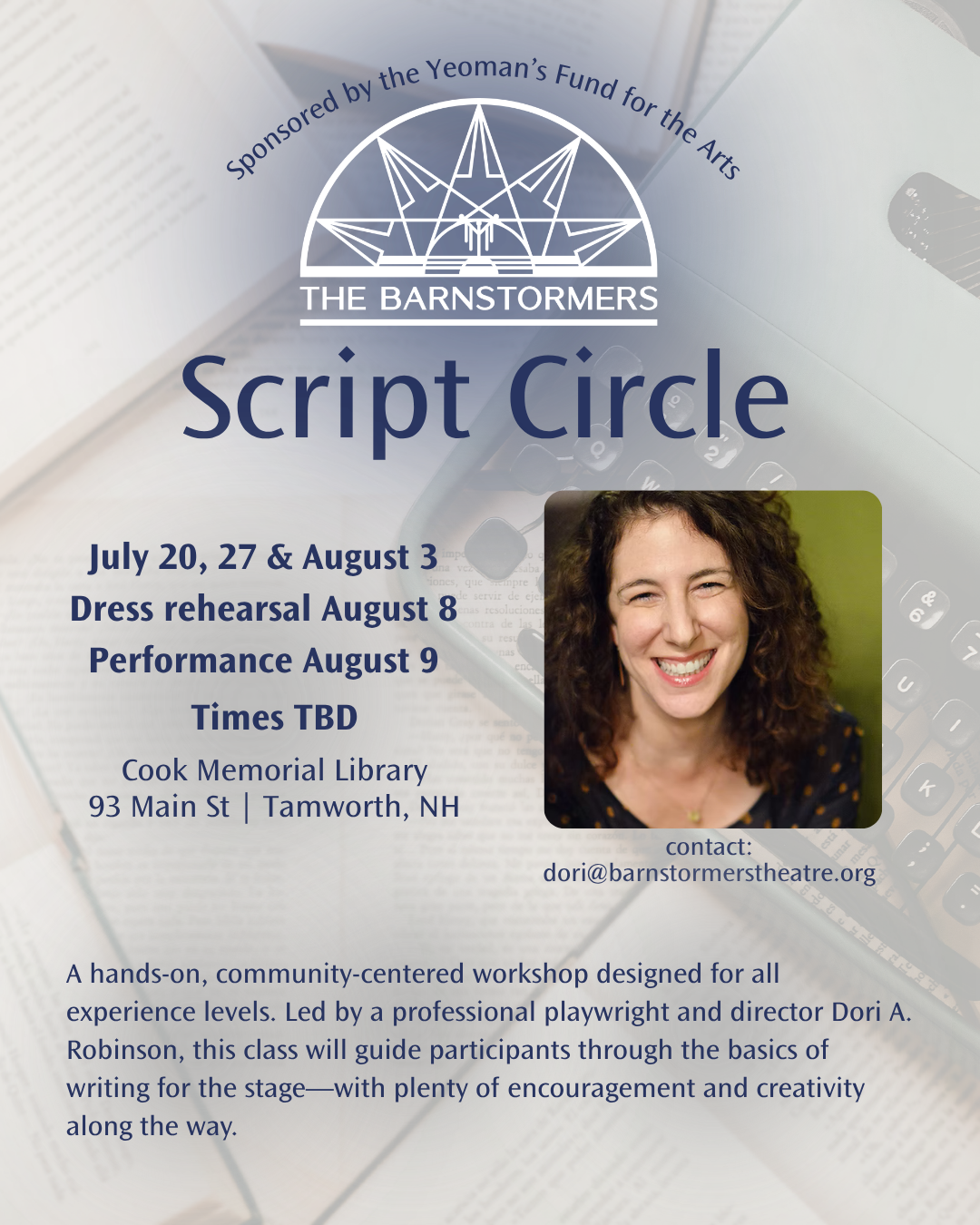 Thanks to a generous grant from the Yeoman’s Fund for the Arts, We are delighted to announce that The Barnstormers Drama Book Club and Script Circle are back this summer!