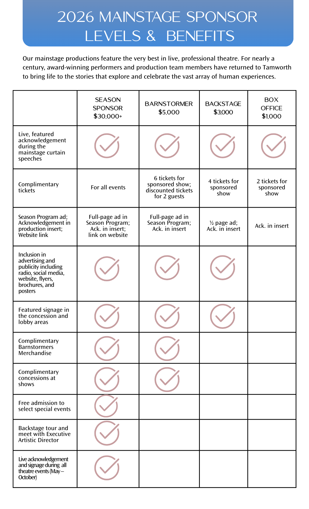 Partner with The Barnstormers Theatre — one of the region’s most vibrant cultural and artistic gems!